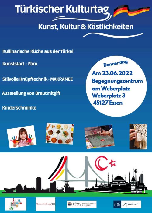 Unsere Institution organisiert eine Veranstaltung mit Schwerpunkt auf Deutsch- und Integrationskursen. Ziel der Veranstaltung ist es, den sprachlichen Austausch, die Integration sowie das Zusammenkommen in einer offenen und unterstützenden Atmosphäre zu fördern